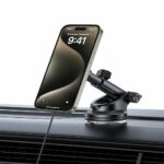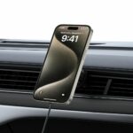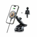Designerský automobilový držák Tech-Protect MM15W-V5, vybavený možností nabíjení zařízení Apple s technologií MagSafe o maximálním výkonu 15W. Je vybaven pevným, délkově nastavitelným ramenem, které v kombinaci s otočnou hlavou umožňuje ideální přizpůsobení a vynikající pohodlí při používání.