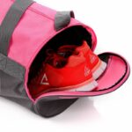 Lehká, skládací fitness taška v pěkné svěží barvě je vyrobena z vysoce kvalitních materiálů, což zaručuje odolnost. Obsahuje hlavní kapsu, která se otevírá na zip, boční kapsa, která je dost velká a vejdou se do něj různé věci – například boty. Uvnitř tašky je malá průhledná kapsa na drobnosti nebo na telefon. Taška kromě ruček obsahuje také dlouhý nastavitelný popruh.