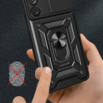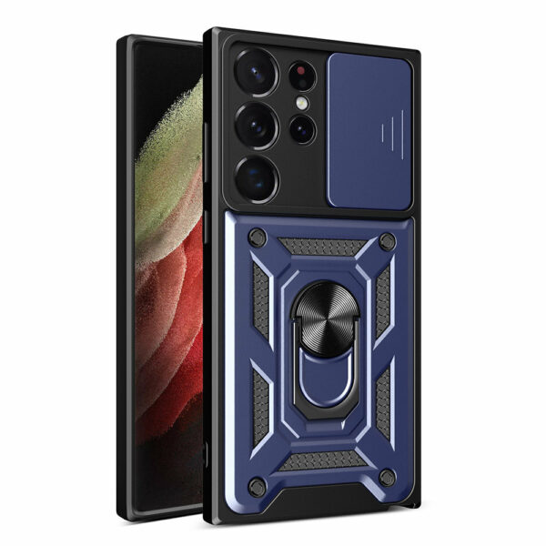 Zvýšené okraje kolem displeje jej chrání před poškrábáním, když jej položíte na rovný povrch. Má zabudovaný kovový kroužek, který umožňuje pohodlné používání telefonu jednou rukou a funguje také jako stojan. Zabudovaná kovová deska umožňuje připevnění na magnetické držáky do auta. Má citlivá tlačítka a výřezy pro porty. Ideální pro lidi, kteří si cení stylu, kvality a chtějí se o své zařízení starat.