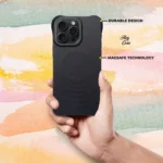 Měkká podšívka z mikrovlákna uvnitř pouzdra chrání zařízení před poškrábáním a drobným poškozením. Vyvýšený okraj kolem ostrovku fotoaparátu je dalším prvkem, který zvyšuje bezpečnost Vašeho iPhone a chrání objektivy před poškozením během každodenního používání.