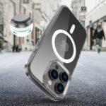 Klasický, jednocentrový kryt Flexair Hybrid Magsafe od Tech-Protect s průhledným provedením, navržený tak, aby zvýraznil linie a originální siluetu zařízení.