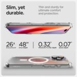 Spigen Ultra Hybrid ”T” Magsafe je pouzdro, které spojuje nejlepší vlastnosti ochrany a estetiky, poskytující vašemu smartphonu jak bezpečnost, tak výjimečný vzhled. Díky unikátní hybridní konstrukci (TPU + PC), která kombinuje odolný rám s průhledným panelem, váš telefon zachovává svůj originální design, zatímco je účinně chráněn před poškozením. Zesílené rohy s vzduchovými polštářky (Air Cushion) účinně absorbují nárazy, čímž poskytují dodatečnou ochranu před pády.