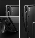 Dvoudílné pouzdro kombinuje tvrdý pancíř nošený na zadní straně, vyrobený z povlaku PC a nárazuvzdorného TPU. Další výztuhy v rozích – ochranné vzduchové polštáře – účinně tlumí případné pády. Přední část zařízení je obepnuta rámem s integrovaným polykarbonátovým krytem. Ten zajišťuje vynikající oddělení displeje a chrání jej před poškrábáním.