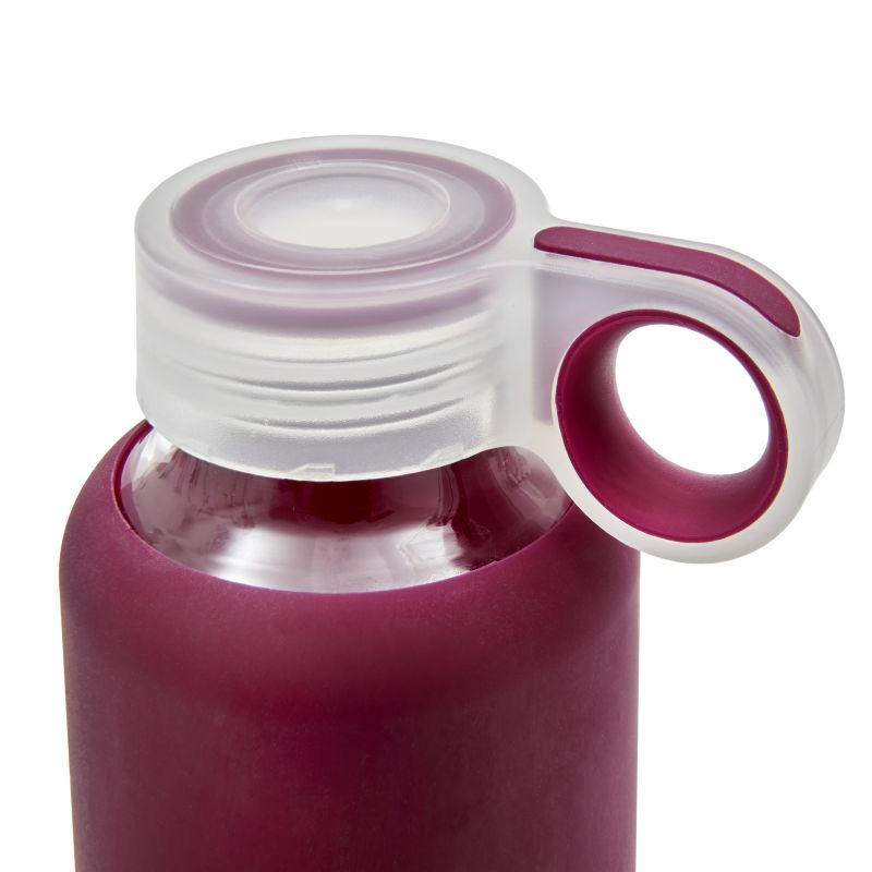 Láhev o objemu 410 ml je vyrobena z pevného skla, umístěná v silikonovém obalu. Žáruvzdorné sklo znamená, že do něj můžete nalévat teplé i studené nápoje. Protiskluzový povrch zabraňuje vyklouznutí láhve z ruky.