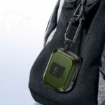 Vybaven praktickým karabinem, který zvyšuje možnosti použití – sluchátka lze připevnit k šňůrce s klíči nebo k poutku na kalhotách, což činí pád či ztrátu sady téměř nemožné.