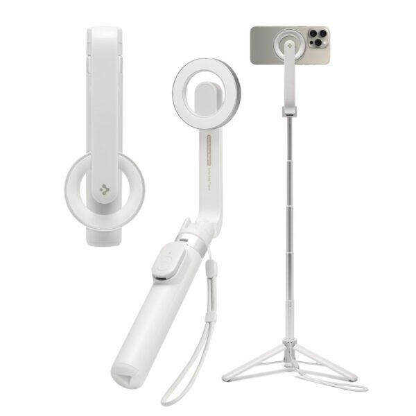 Spigen S571W MagSafe Bluetooth Selfie Stick Tripod je inovativní nástroj vytvořený s ohledem na nadšence fotografie a natáčení. Byl navržen speciálně tak, aby splnil očekávání uživatelů chytrých telefonů, zejména majitelů iPhonů vybavených technologií MagSafe. Vyniká nejen výjimečným designem, ale také pevnou konstrukcí.