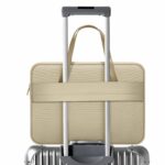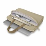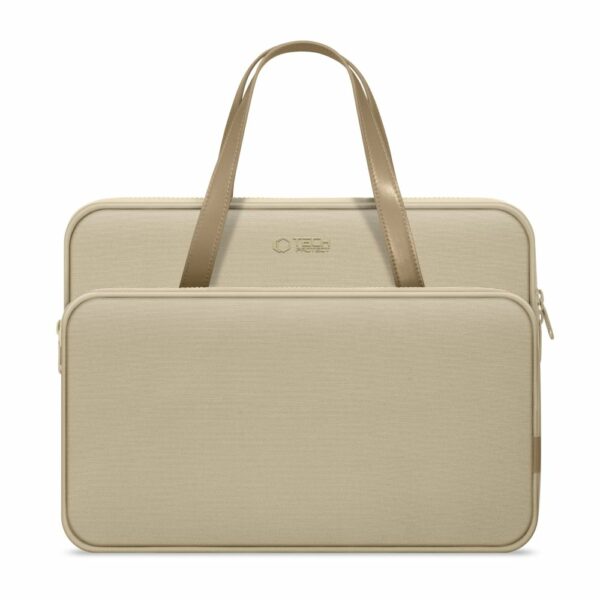 Jeho funkčnost se projevuje v promyšleném uspořádání dvou oddělených kapes – jedné určené na laptop, druhé na nezbytné příslušenství. Pohodlné úchyty vyrobené z ekologické kůže umožňují nosit tašku v ruce, zároveň vytvářejí elegantní design. Další upevnění umožňuje přehodit ji přes rukojeť kufru, což je obzvlášť praktické během cestování.